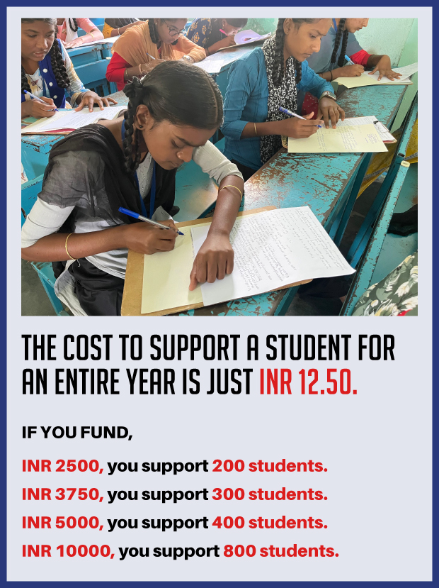 IT COSTS JUST INR 12.50 TO SUPPORT A STUDENT FOR AN ENTIRE YEAR.