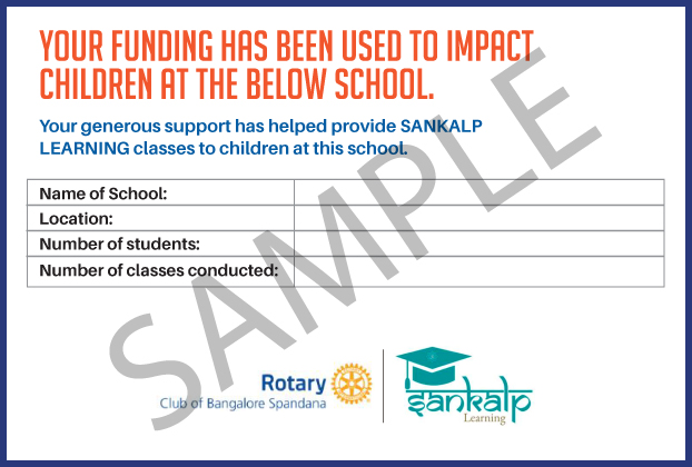 Funding for this campaign is eligible for tax benefits as the Rotary Club of Bangalore Spandana, is a registered trust, and you can avail of benefits under section 80G of the IT Act. Foreign funding is NOT accepted.