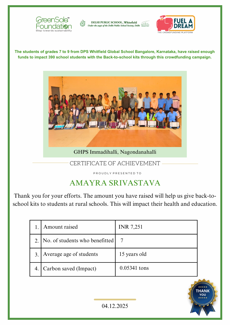 My name is AMAYRA SRIVASTAVA. I am 12 years old and a Grade 8 student at DPS Whitefield, Bengaluru.