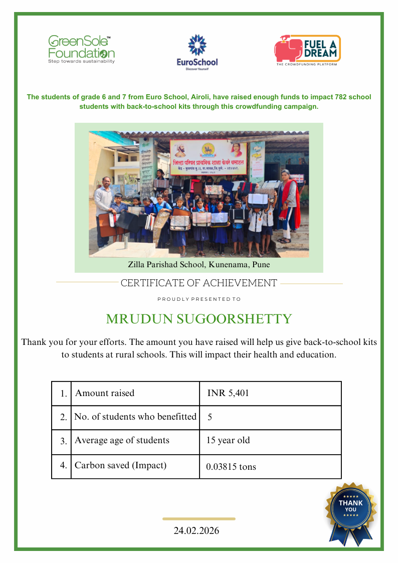 I have undertaken this campaign because I was surprised to learn that many students from low-income homes in Maharashtra, who go to school (mainly govt schools) do not have basic school gear like proper footwear or a school bag, and often sit on the hard ground in order to study at school.