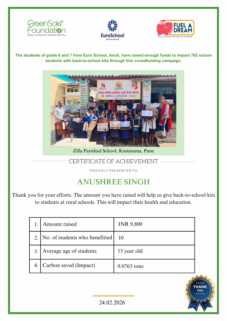 I have undertaken this campaign because I was surprised to learn that many students from low-income homes in Maharashtra, who go to school (mainly govt schools) do not have basic school gear like proper footwear or a school bag, and often sit on the hard ground in order to study at school.