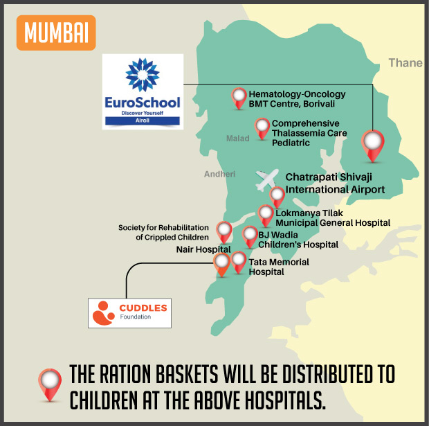 This campaign of mine is being done in partnership with the NGO -Cuddles Foundation and aims to fight hunger and malnutrition in children from low-income homes by giving them a MONTHLY RATION BASKET. This improves their chance of survival by 70% and ultimately does save lives. The baskets are given to children at the Tata Memorial Hospital, BJ Wadia Children's Hospital, Lokmanya Tilak Municipal General Hospital, Nair Hospital, King Edward Memorial Hospital, Comprehensive Thalassemia Care Pediatric Hematology-Oncology BMT Centre, and Society for Rehabilitation of Crippled Children in Mumbai. This costs just INR 4500 per month.