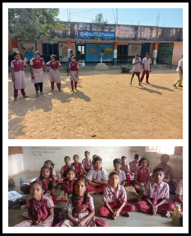 PIC: The facade of the school and students from the Government Primary school in rural Telangana.