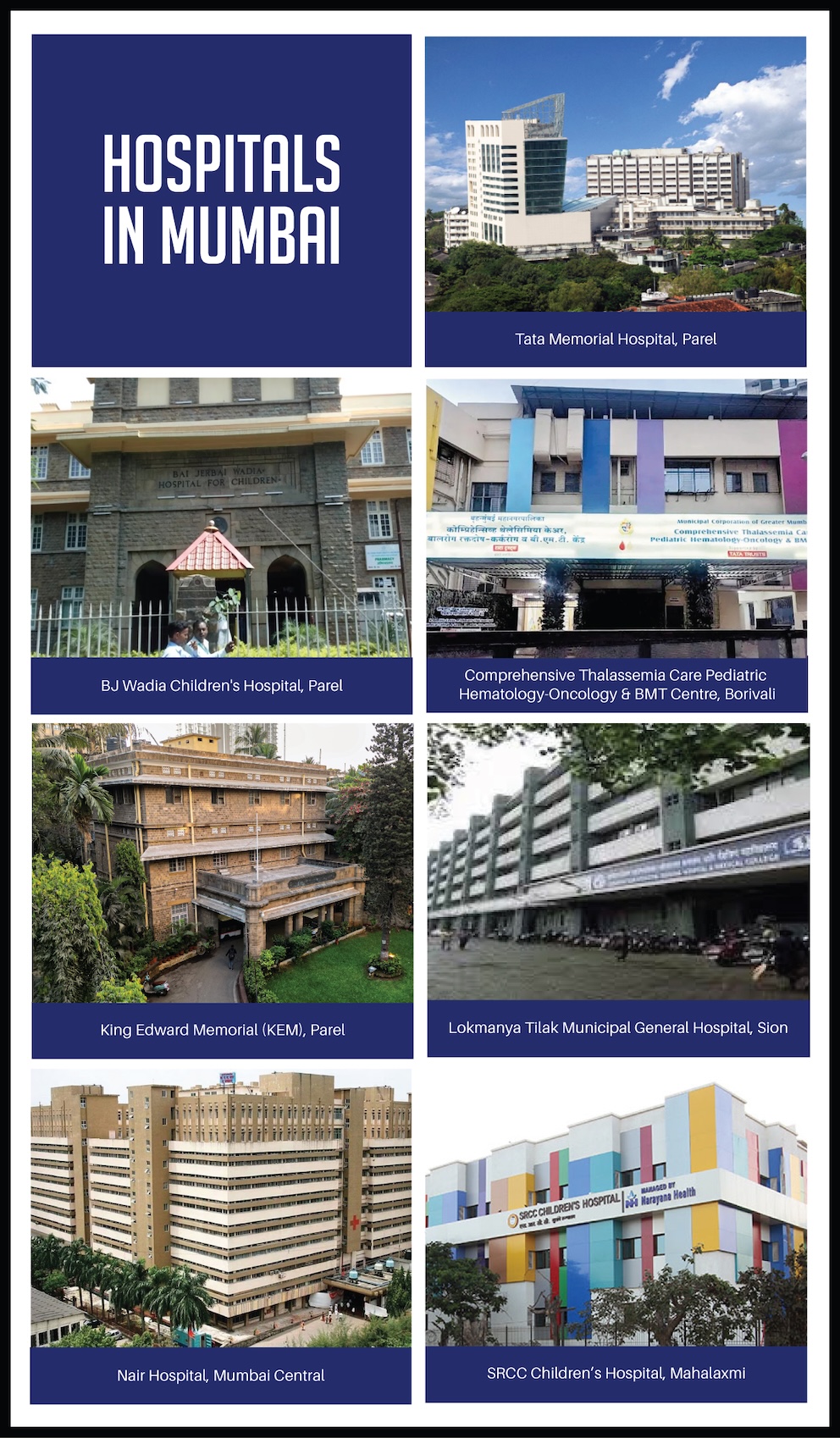 Cancer in children is highly curable if diagnosed early and treated appropriately. A large portion of these children come from economically stressed homes. They face a lot of challenges when it comes to treatment, accommodation, food, etc. Tata Memorial Hospital, BJ Wadia Children's Hospital, Lokmanya Tilak Municipal General Hospital, Nair Hospital, King Edward Memorial Hospital, Comprehensive Thalassemia Care Pediatric Hematology-Oncology BMT Centre, and Society for Rehabilitation of Crippled Children in Mumbai see hundreds of children visiting them for cancer treatment. Majority of these children are from low-income homes.