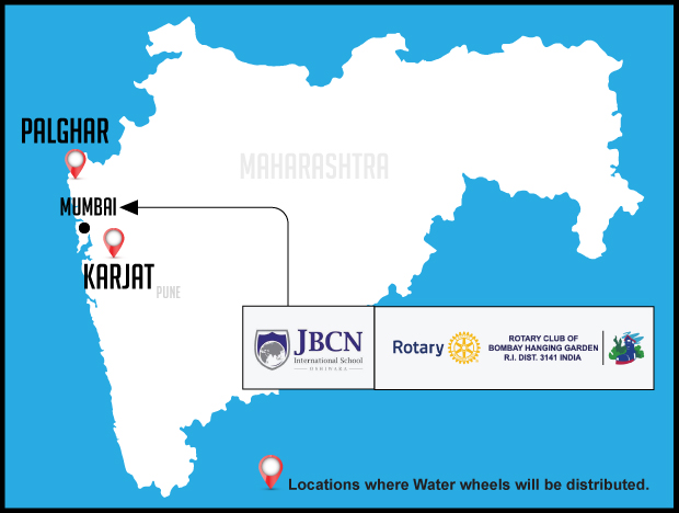 Water wheels will be distributed in the rural areas of Maharashtra. 1183 beneficiaries have been identified in villages across Palghar and Karjat. One of the most important behavioral changes is that men are willing to help out with getting water ( if a water wheel is available). That is a dramatic change in behavior at the grassroots and allows women to do other productive work.