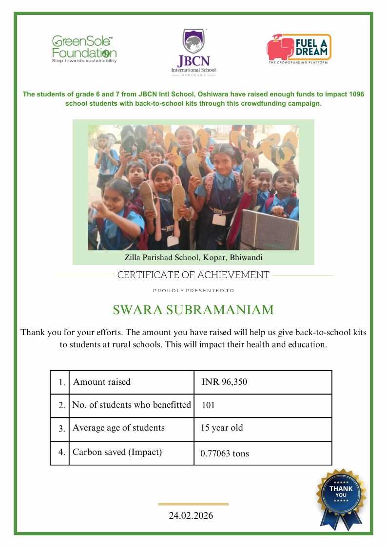The back-to-school kit costs just INR 950 and gives students a pair of recycled footwear, a recycled study mat to sit comfortably at school or home, and a recycled school bag for books. This is a very small amount to impact a student. Fund INR 2850, for example, and transform the lives of 3 students.