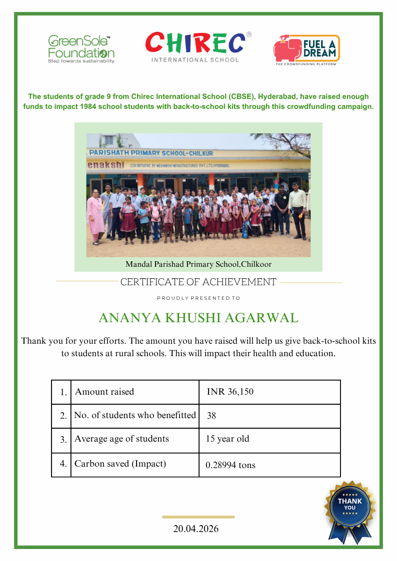 My name is Ananya Khushi Agarwal. I am 14 years old and a Grade 9 student at Chirec Intl School (CBSE), Hyderabad.