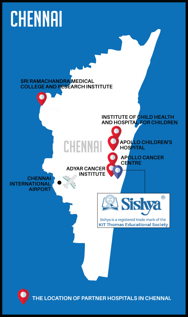 This will impact children from low-income homes at the following partner hospitals in Chennai: Adyar Cancer Institute, Apollo Cancer Centre, Apollo Children's Hospital, Institute of Child Health Hospital, and Sri Ramachandra Medical College and Hospital.