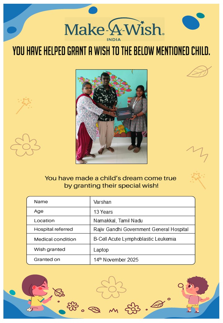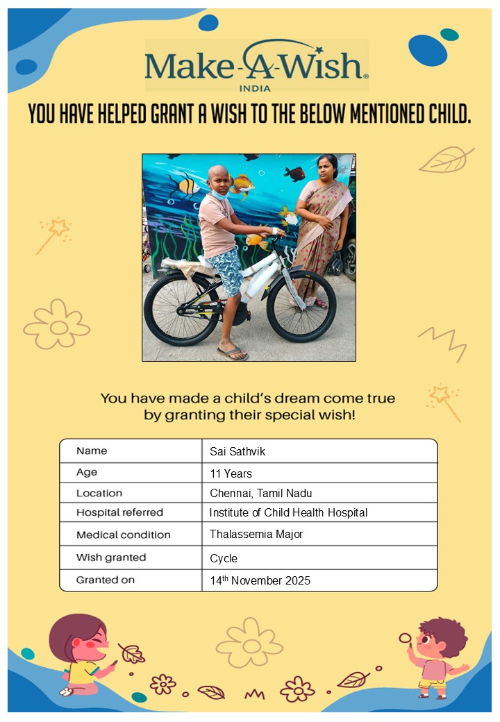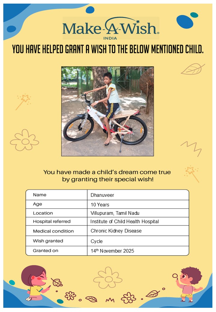 At an average cost of INR 10,000, every wish covers planning, logistics, and the magical experience itself, and by supporting this campaign, you are not just creating smiles but giving children hope, strength, and a better chance of recovery.