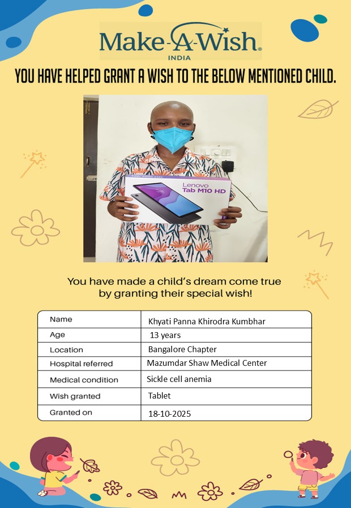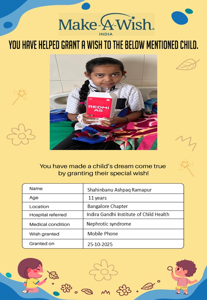 At an average cost of INR 10,000, every wish covers planning, logistics, and the magical experience itself, and by supporting this campaign, you are not just creating smiles but giving children hope, strength, and a better chance of recovery.