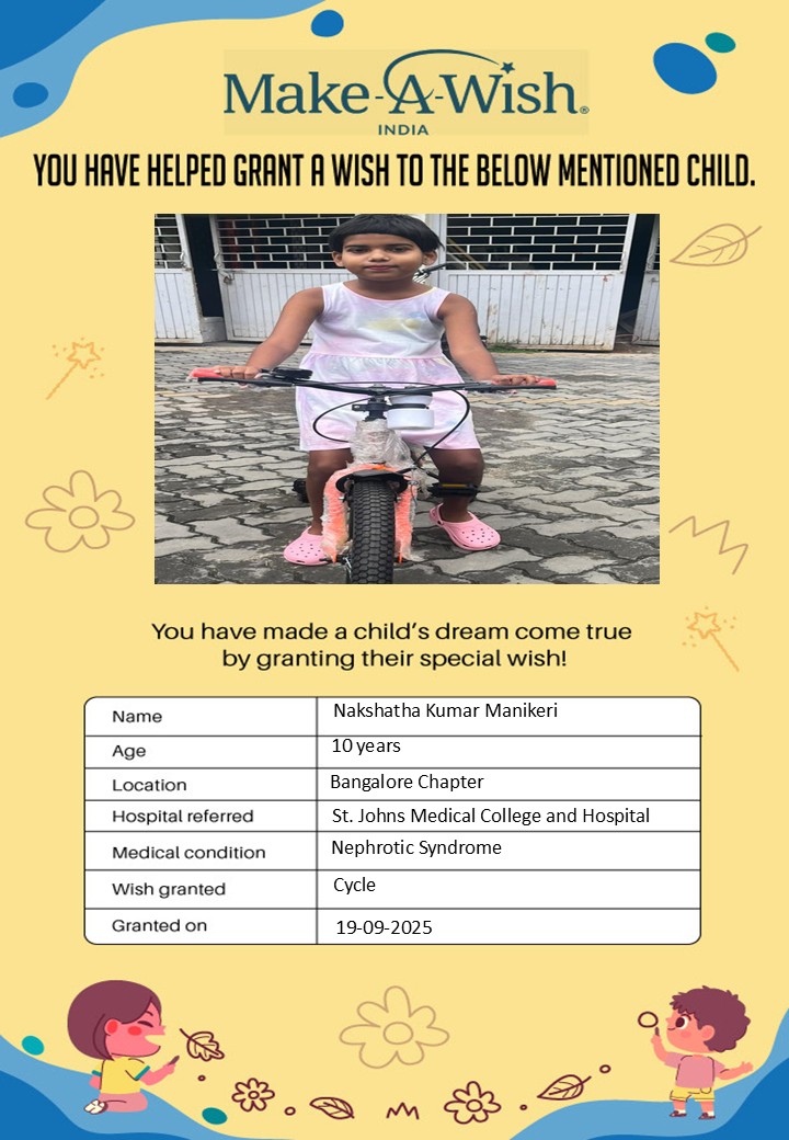 By supporting this campaign, you can help turn a child’s dream into reality, giving them strength, hope, and smiles for a brighter future. Your contribution spreads joy, courage, and inspiration to children in Bengaluru who need it most and helps them believe in the magic of dreams, even in the toughest times.