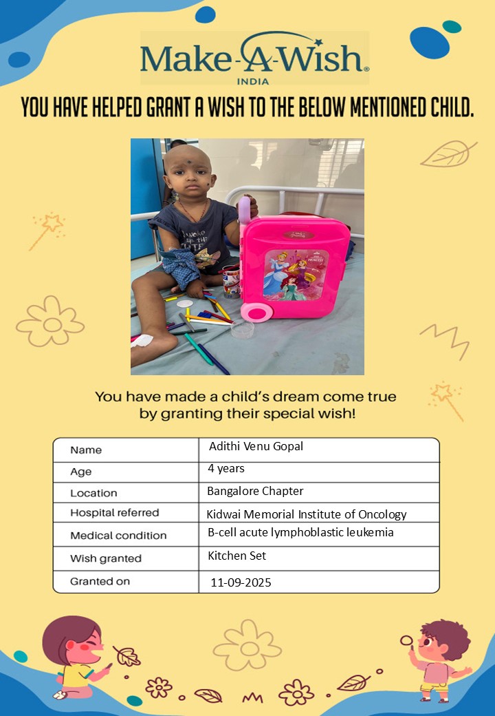 At an average cost of INR 10,000, every wish covers planning, logistics, and the magical experience itself, and by supporting this campaign, you are not just creating smiles but giving children hope, strength, and a better chance of recovery.