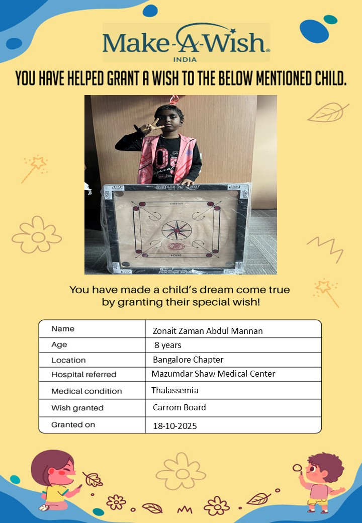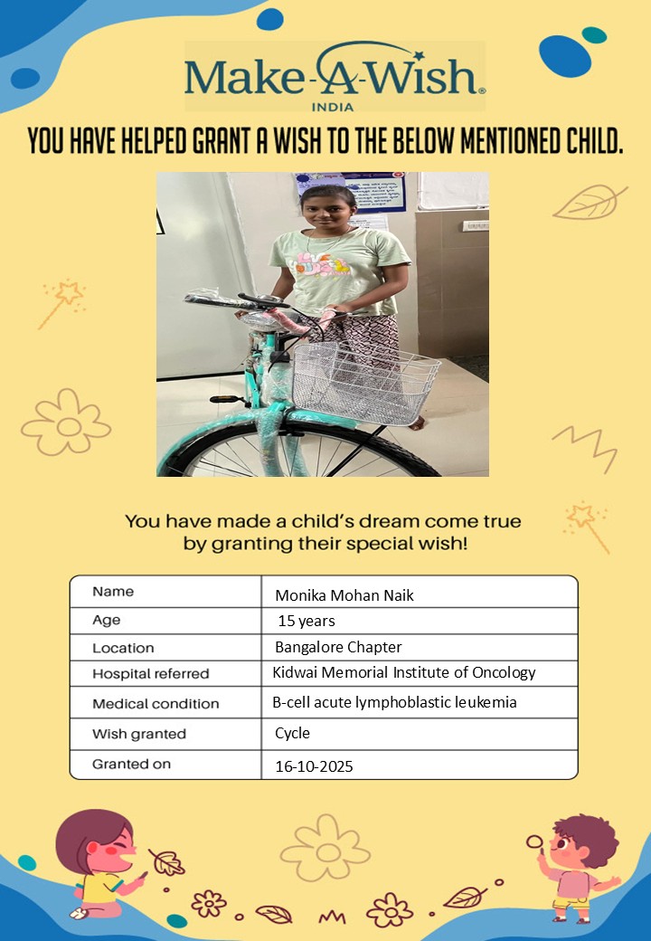 By supporting this campaign, you can help turn a child’s dream into reality, giving them strength, hope, and smiles for a brighter future. Your contribution spreads joy, courage, and inspiration to children in Bengaluru who need it most and helps them believe in the magic of dreams, even in the toughest times.