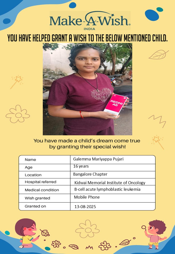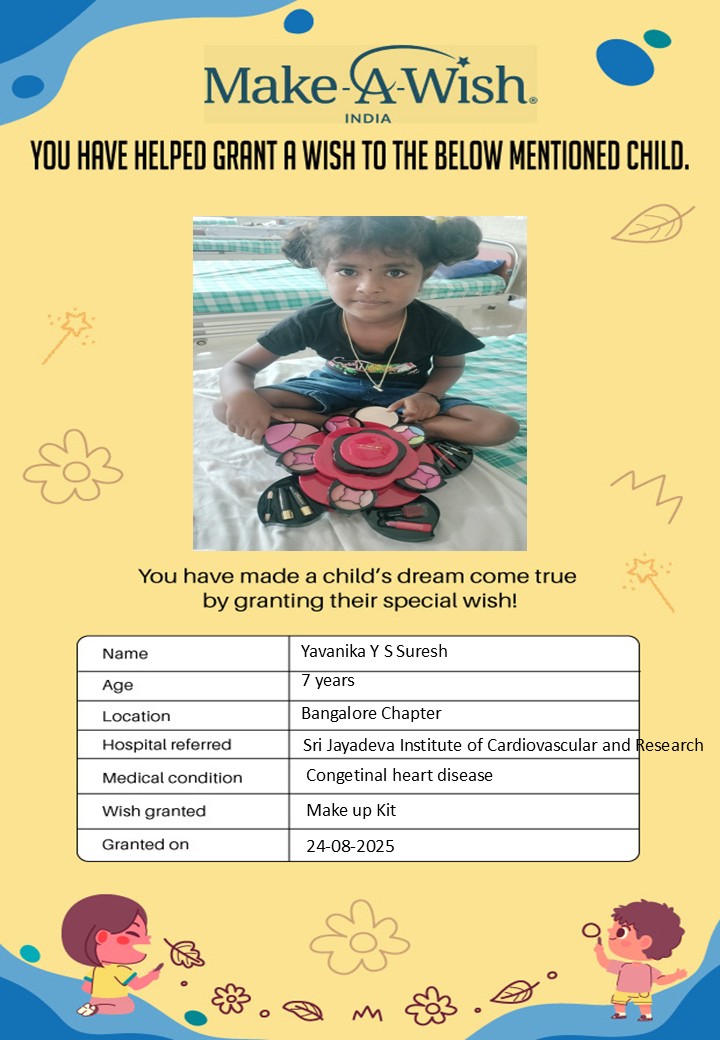 By supporting this campaign, you can help turn a child’s dream into reality, giving them strength, hope, and smiles for a brighter future. Your contribution spreads joy, courage, and inspiration to children in Bengaluru who need it most and helps them believe in the magic of dreams, even in the toughest times.