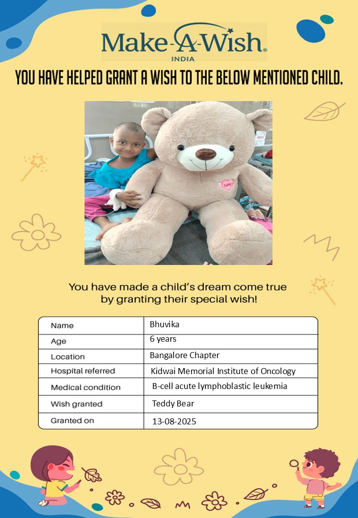 At an average cost of INR 10,000, every wish covers planning, logistics, and the magical experience itself, and by supporting this campaign, you are not just creating smiles but giving children hope, strength, and a better chance of recovery.