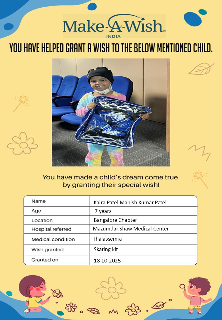 At an average cost of INR 10,000, every wish covers planning, logistics, and the magical experience itself, and by supporting this campaign, you are not just creating smiles but giving children hope, strength, and a better chance of recovery.