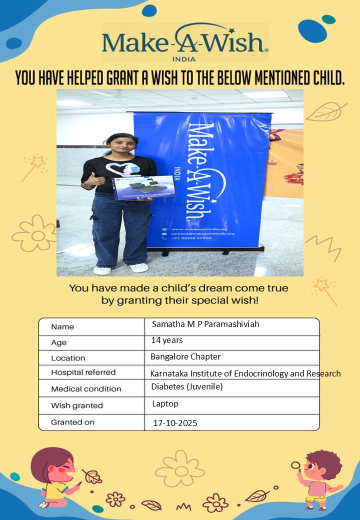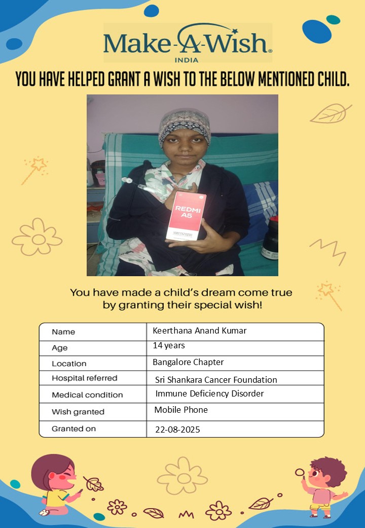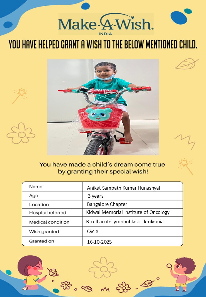 By supporting this campaign, you can help turn a child’s dream into reality, giving them strength, hope, and smiles for a brighter future. Your contribution spreads joy, courage, and inspiration to children in Bengaluru who need it most and helps them believe in the magic of dreams, even in the toughest times.