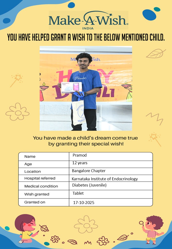 Make-A-Wish India Trust has been granting life-changing wishes to children with critical illnesses since 1995. For children between the ages of 3–18 years, who spend much of their lives in hospitals undergoing painful treatments, a wish is more than just a fleeting joy; it becomes a vital part of their healing journey. Research shows that wishes bring emotional and psychological strength, often improving treatment adherence and enhancing quality of life. With 8 chapters across India, partnerships with over 120 hospitals, and more than 95,000 wishes granted, the foundation is now working towards the milestone of 100,000 wishes by 2025.