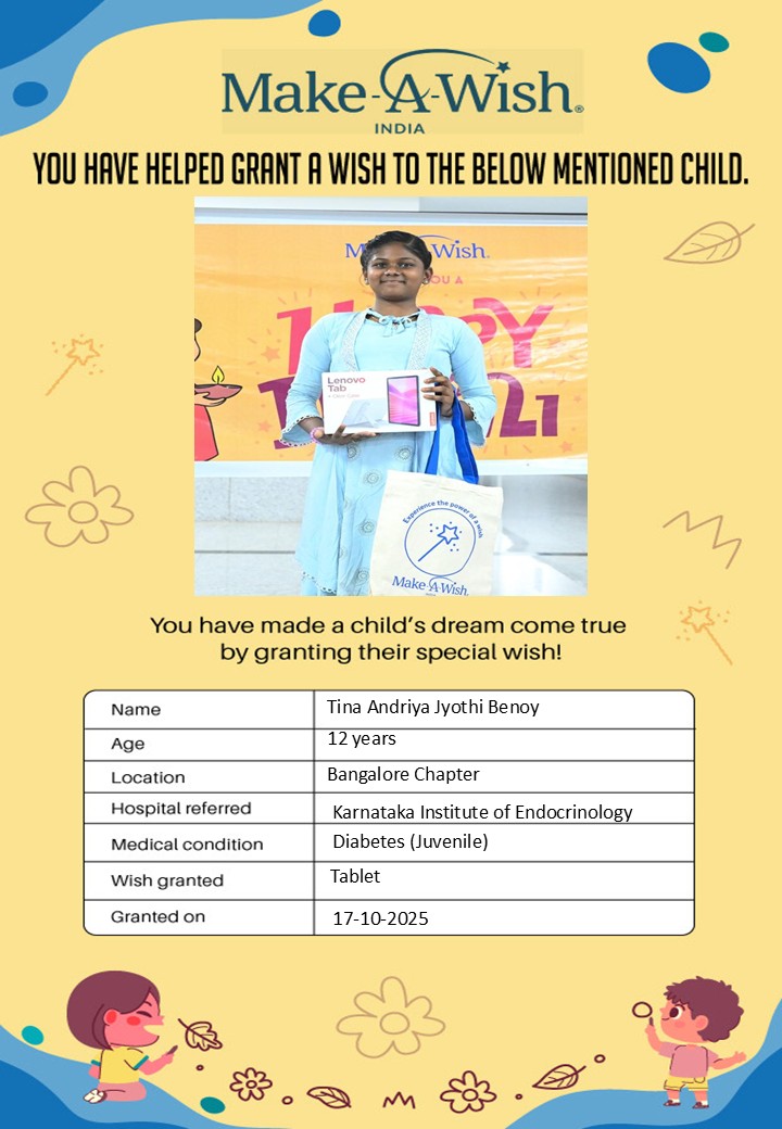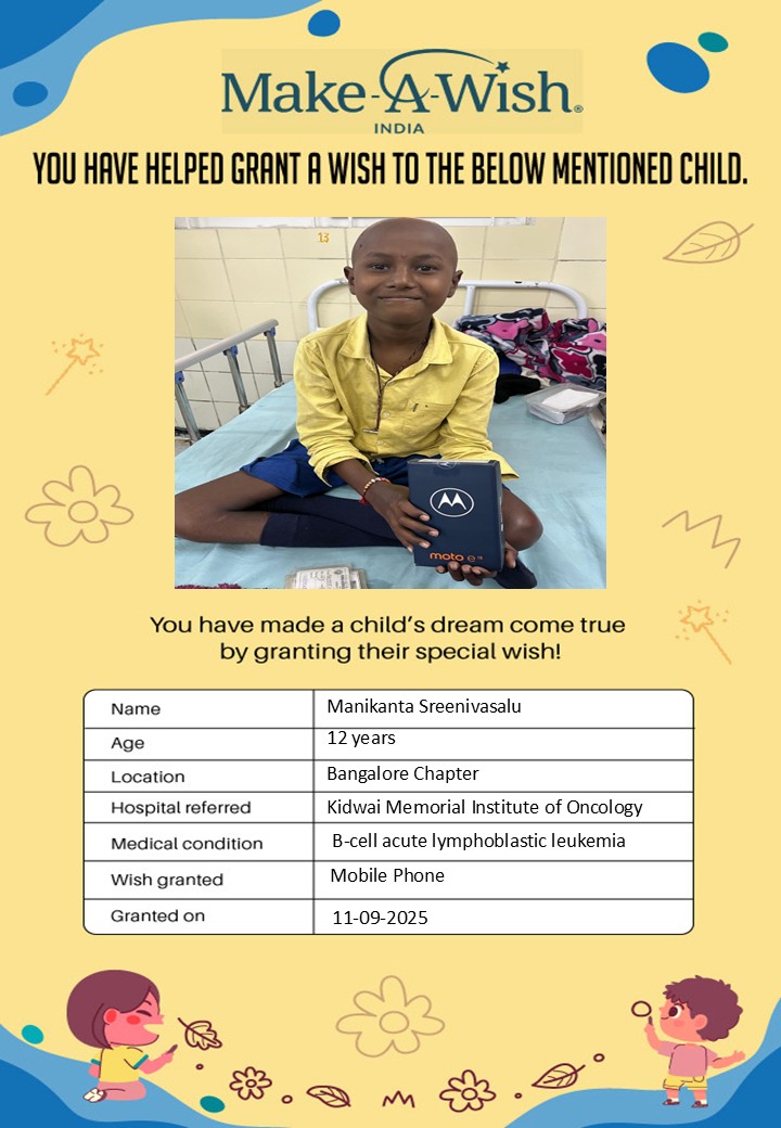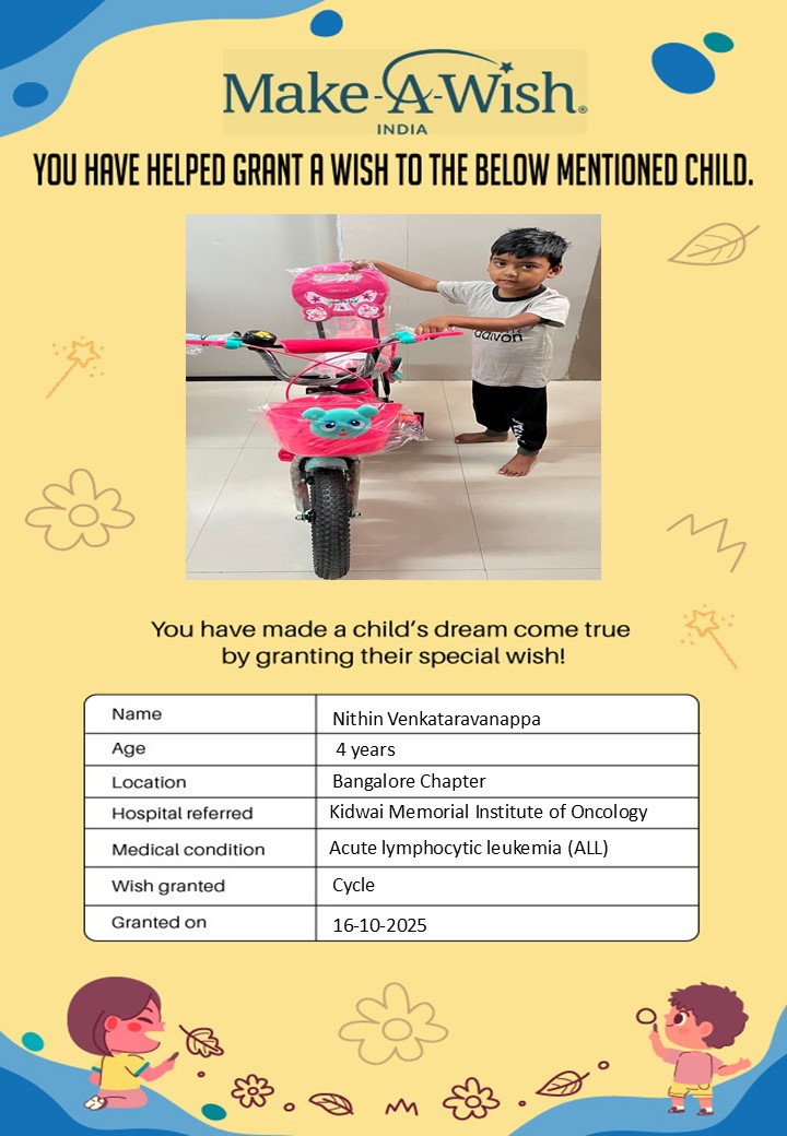 At an average cost of INR 10,000, every wish covers planning, logistics, and the magical experience itself, and by supporting this campaign, you are not just creating smiles but giving children hope, strength, and a better chance of recovery.