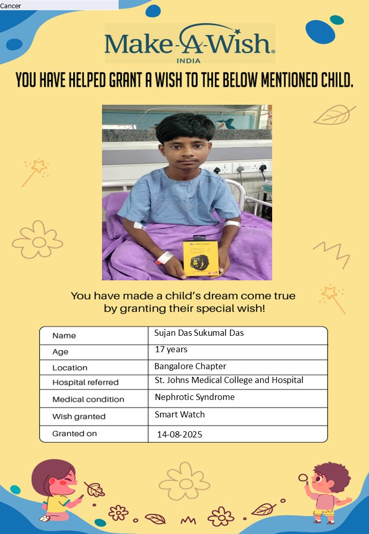 By supporting this campaign, you can help turn a child’s dream into reality, giving them strength, hope, and smiles for a brighter future. Your contribution spreads joy, courage, and inspiration to children in Bengaluru who need it most and helps them believe in the magic of dreams, even in the toughest times.