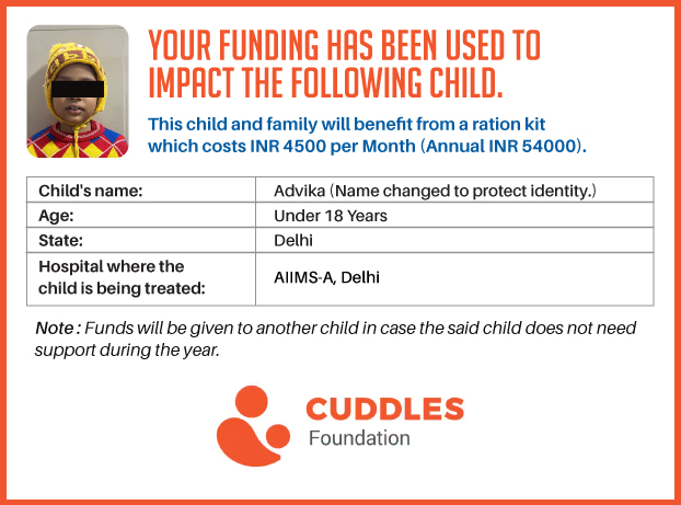 I have undertaken this campaign because this is a critical element in the treatment of these children who go through the difficult journey of fighting cancer. Although there are several people and organizations that sponsor the treatment of financially stressed patients, there are very few that help out with an equally important issue - "THEIR FOOD AND NUTRITION".