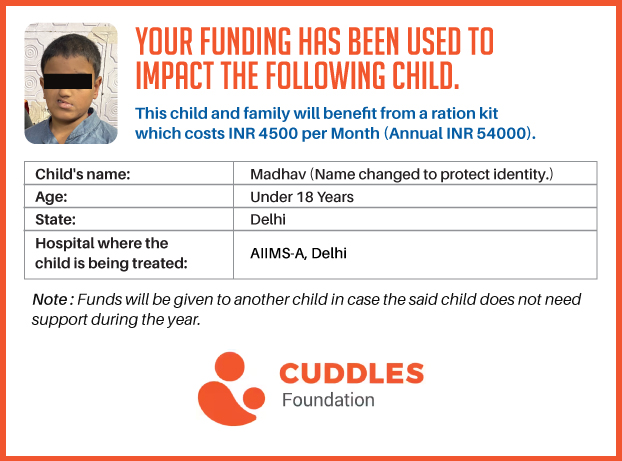 I have undertaken this campaign because this is a critical element in the treatment of these children who go through the difficult journey of fighting cancer. Although there are several people and organizations that sponsor the treatment of financially stressed patients, there are very few that help out with an equally important issue - "THEIR FOOD AND NUTRITION".