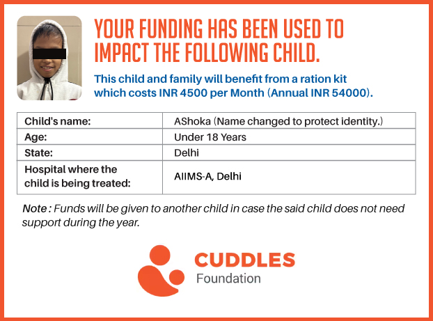 I have undertaken this campaign because this is a critical element in the treatment of these children who go through the difficult journey of fighting cancer. Although there are several people and organizations that sponsor the treatment of financially stressed patients, there are very few that help out with an equally important issue - "THEIR FOOD AND NUTRITION".
