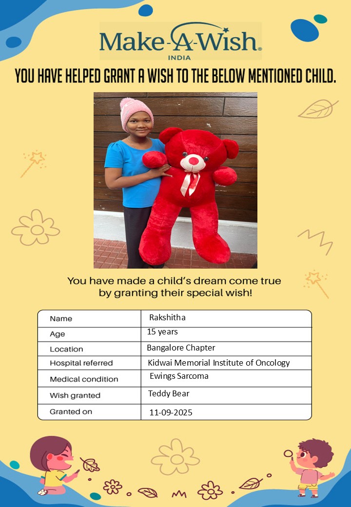 By supporting this campaign, you can help turn a child’s dream into reality, giving them strength, hope, and smiles for a brighter future. Your contribution spreads joy, courage, and inspiration to children in Bengaluru who need it most and helps them believe in the magic of dreams, even in the toughest times.