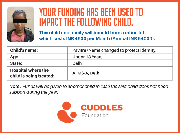 This campaign of mine is being done in partnership with the NGO -Cuddles Foundation and aims to fight hunger and malnutrition in children from low-income homes by giving them a MONTHLY RATION BASKET. This improves their chance of survival by 70% and ultimately does save lives. The baskets are given to children at Sir Ganga Ram Hospital in New Delhi, All India Institute of Medical Sciences (AIIMS) in New Delhi, and Post Graduate Institute of Child Health in Noida.