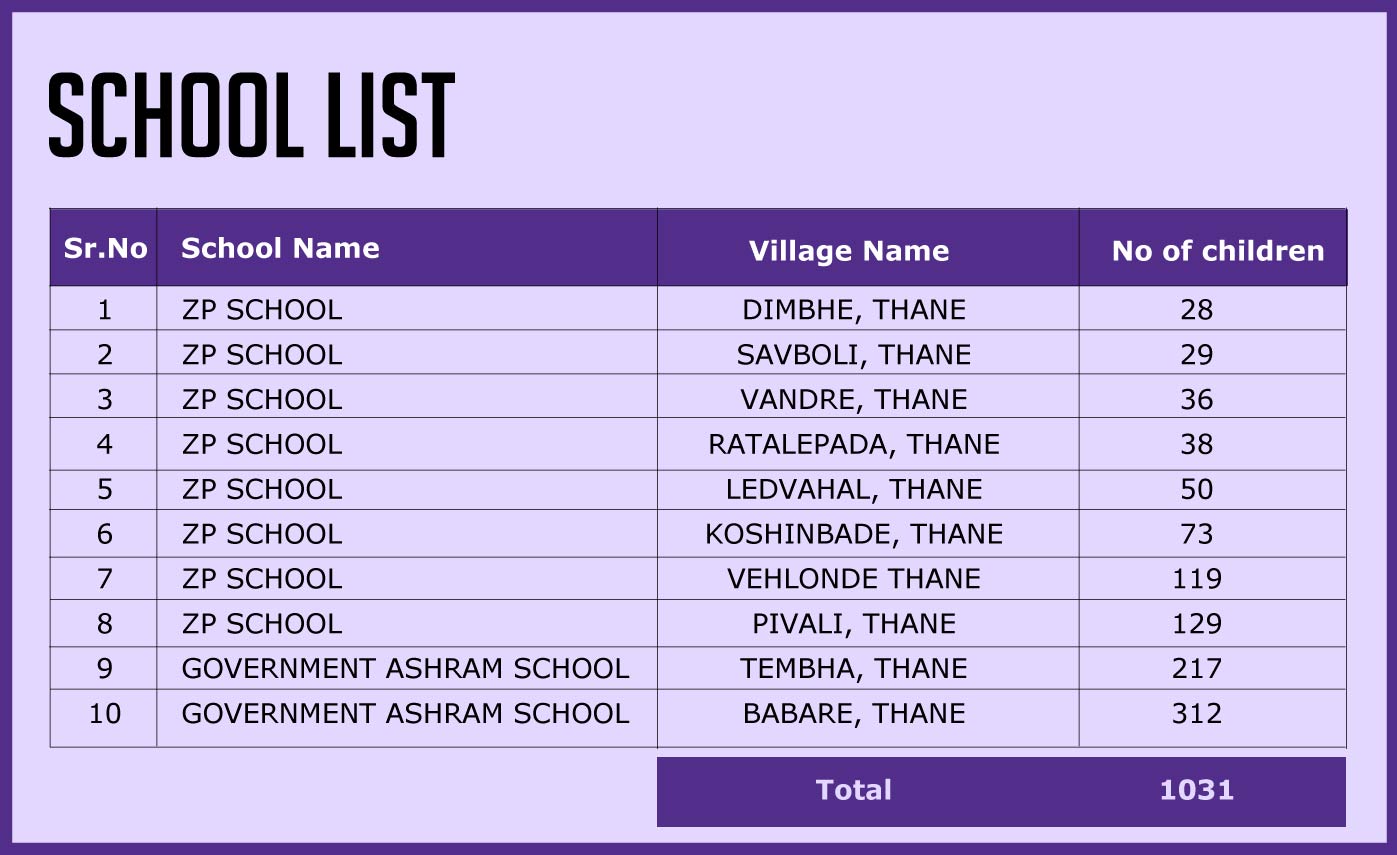 BENEFICIARY INFO : FIRST LIST OF SCHOOLS IN MAHARASHTRA THAT WILL BENEFIT