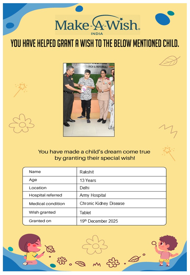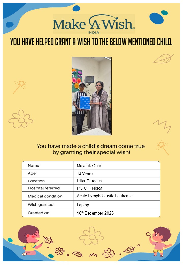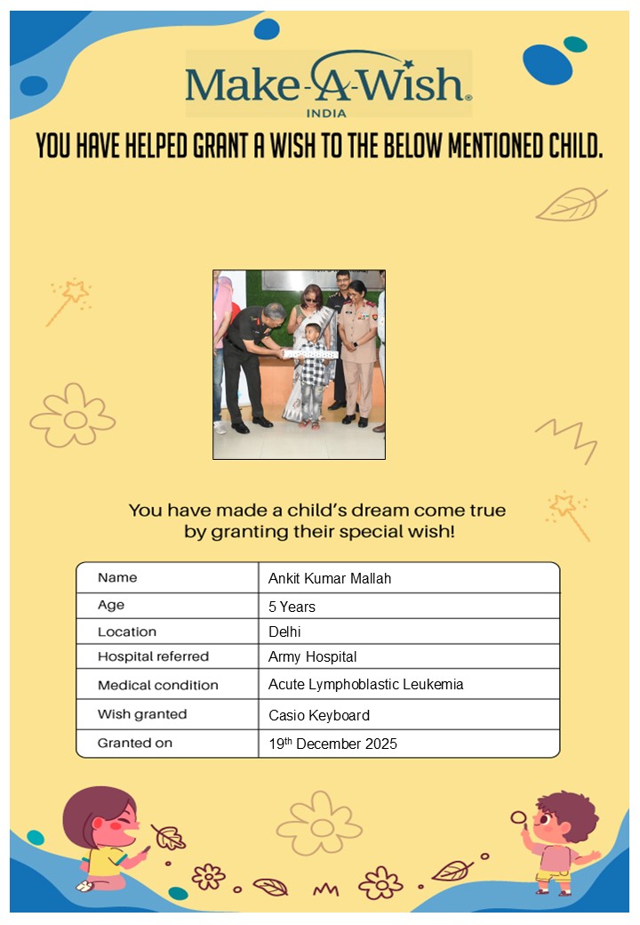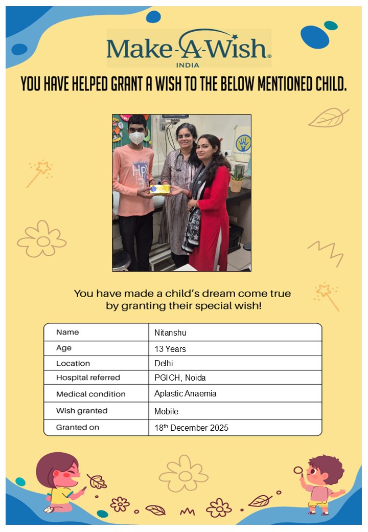 At an average cost of INR 10,000, every wish covers planning, logistics, and the magical experience itself, and by supporting this campaign, you are not just creating smiles but giving children hope, strength, and a better chance of recovery.