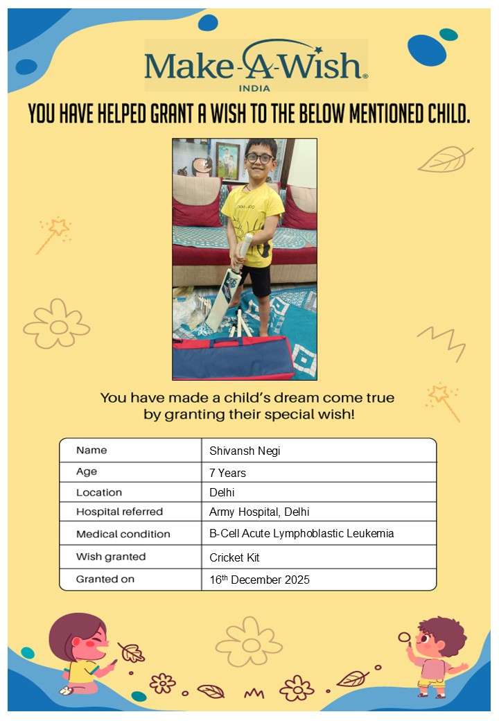 By supporting this campaign, you can help turn a child’s dream into reality, giving them strength, hope, and smiles for a brighter future. Your contribution spreads joy, courage, and inspiration to children in the Delhi/NCR area who need it most and helps them believe in the magic of dreams, even in the toughest times.