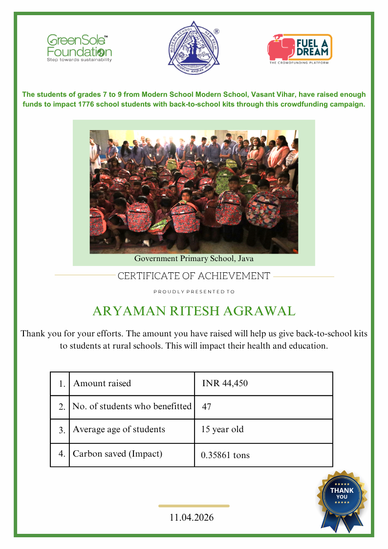 I have undertaken this campaign because I was surprised to learn that many students from low-income homes in some rural areas of Haryana and Uttar Pradesh, who go to school (mainly govt. schools), do not have basic school gear like proper footwear or a school bag, and often sit on the hard ground in order to study at school.