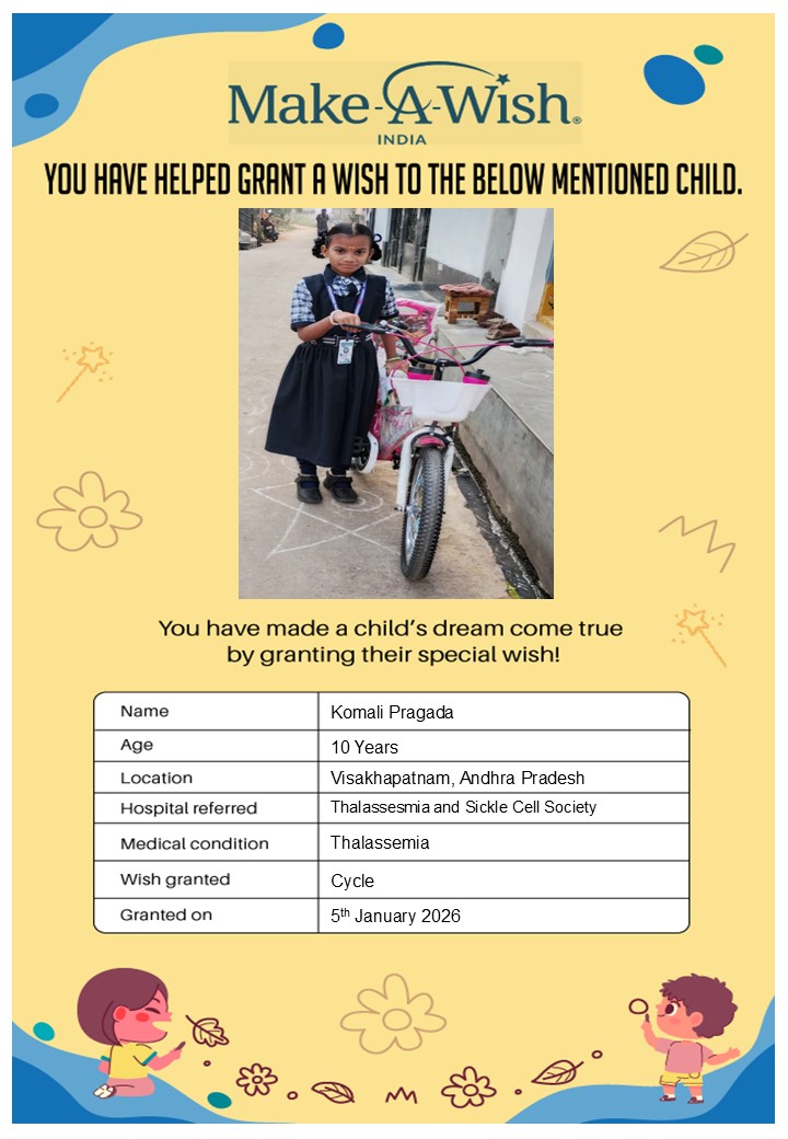 At an average cost of INR 10,000, every wish covers planning, logistics, and the magical experience itself, and by supporting this campaign, you are not just creating smiles but giving children hope, strength, and a better chance of recovery.