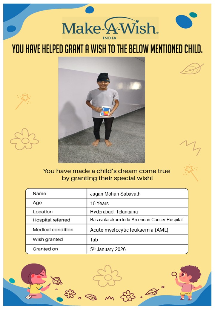 At an average cost of INR 10,000, every wish covers planning, logistics, and the magical experience itself, and by supporting this campaign, you are not just creating smiles but giving children hope, strength, and a better chance of recovery.