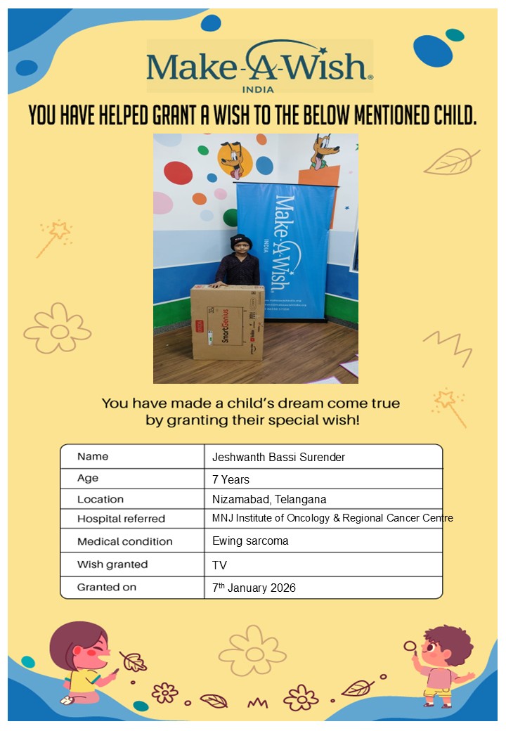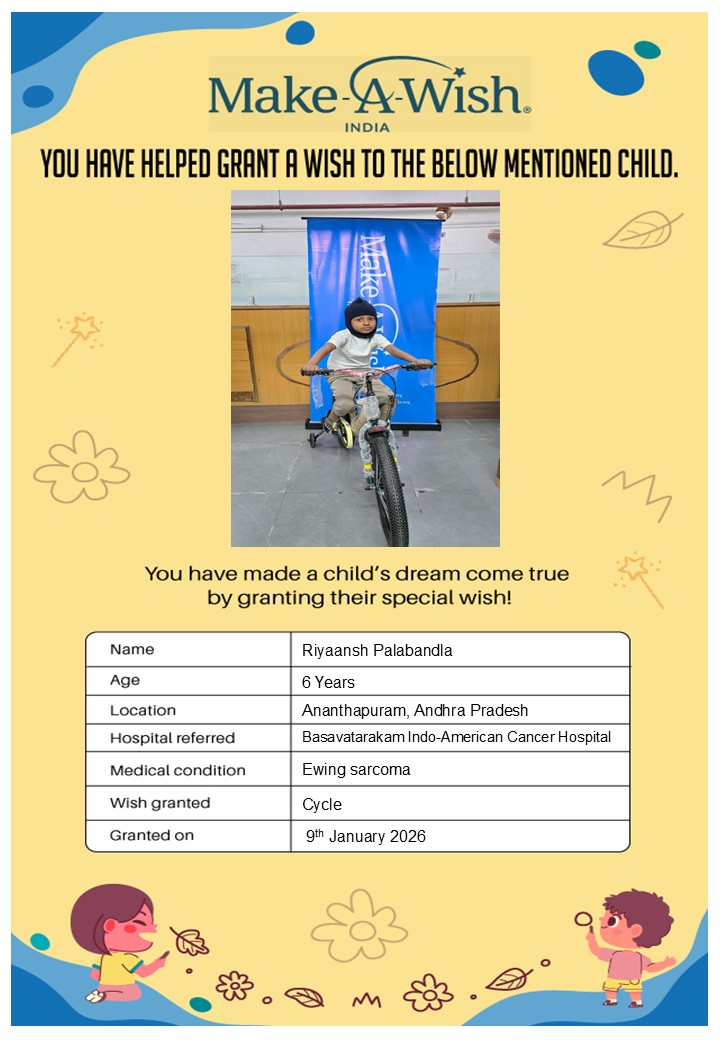 At an average cost of INR 10,000, every wish covers planning, logistics, and the magical experience itself, and by supporting this campaign, you are not just creating smiles but giving children hope, strength, and a better chance of recovery.