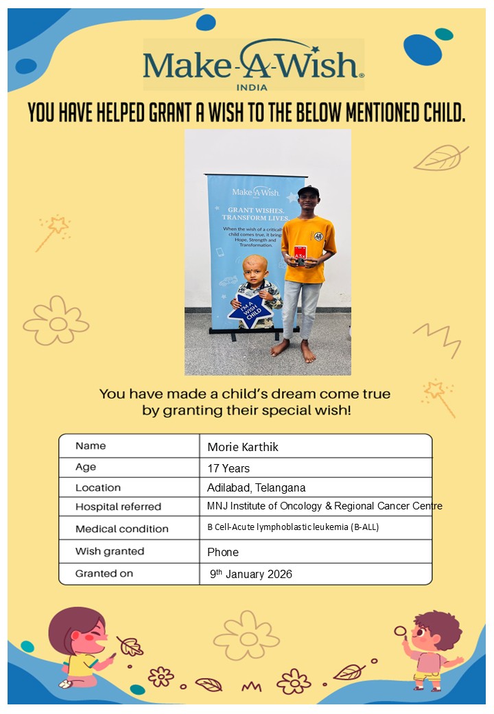 At an average cost of INR 10,000, every wish covers planning, logistics, and the magical experience itself, and by supporting this campaign, you are not just creating smiles but giving children hope, strength, and a better chance of recovery.
