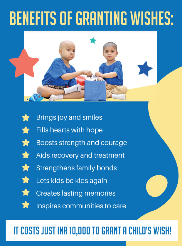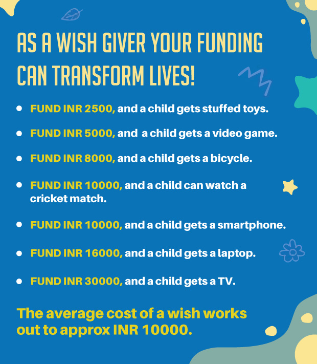 At an average cost of INR 10,000, every wish covers planning, logistics, and the magical experience itself, and by supporting this campaign, you are not just creating smiles but giving children hope, strength, and a better chance of recovery.