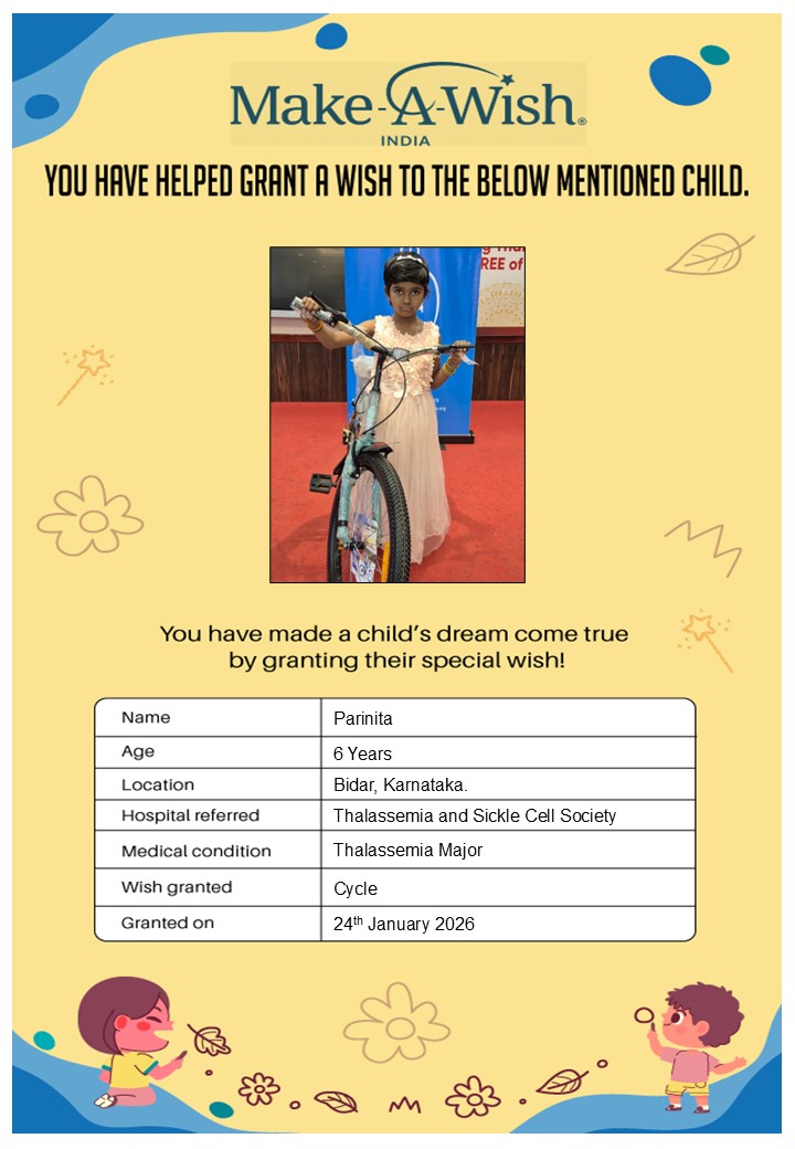 At an average cost of INR 10,000, every wish covers planning, logistics, and the magical experience itself, and by supporting this campaign, you are not just creating smiles but giving children hope, strength, and a better chance of recovery.