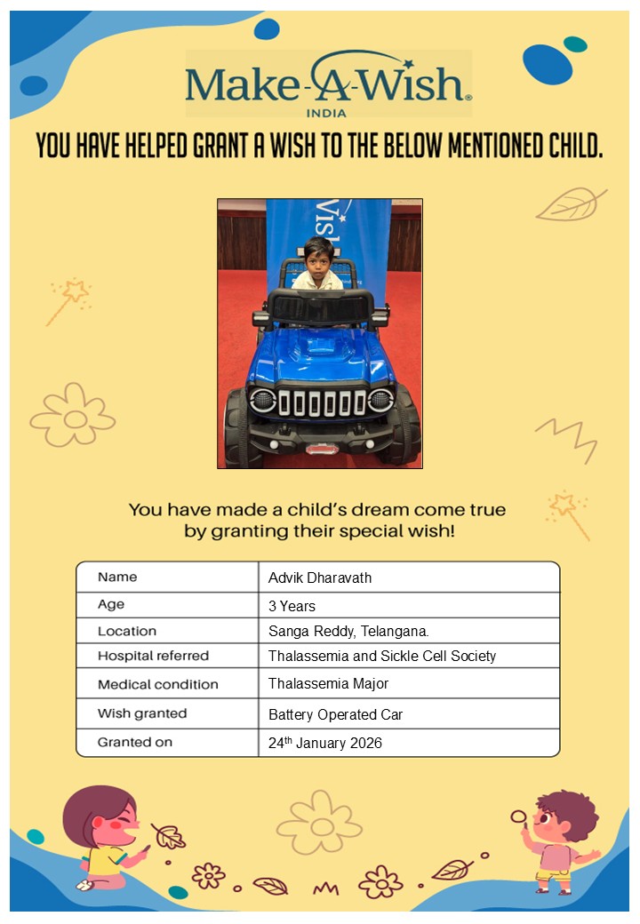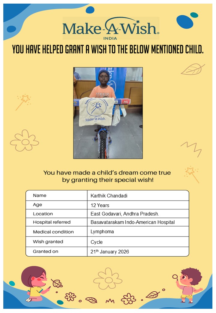At an average cost of INR 10,000, every wish covers planning, logistics, and the magical experience itself, and by supporting this campaign, you are not just creating smiles but giving children hope, strength, and a better chance of recovery.