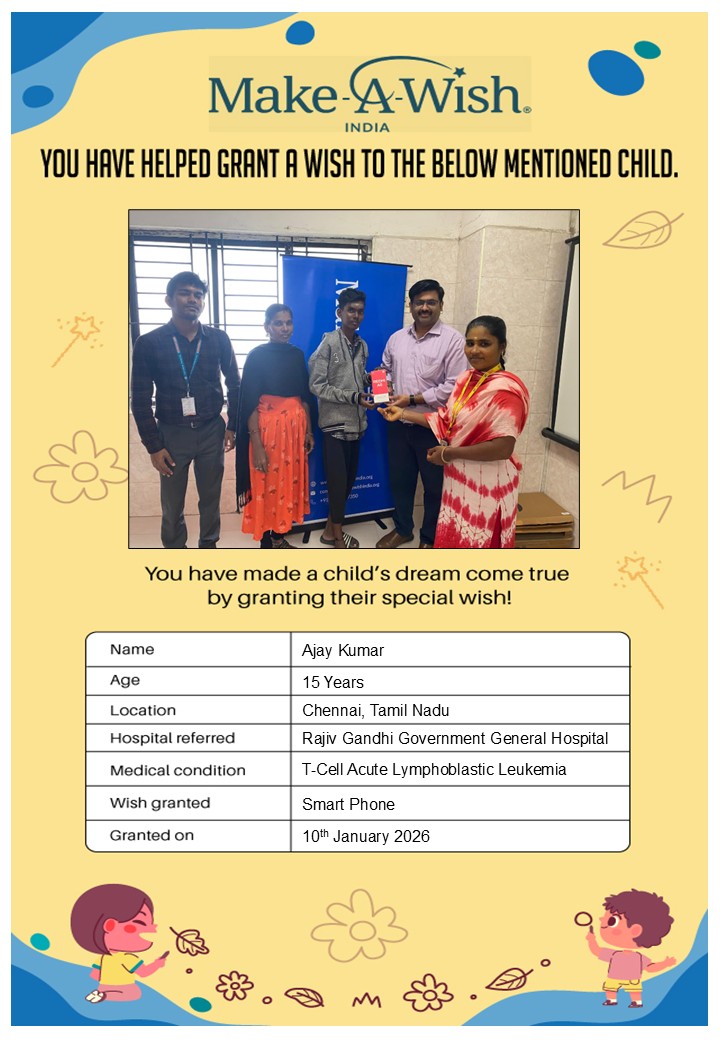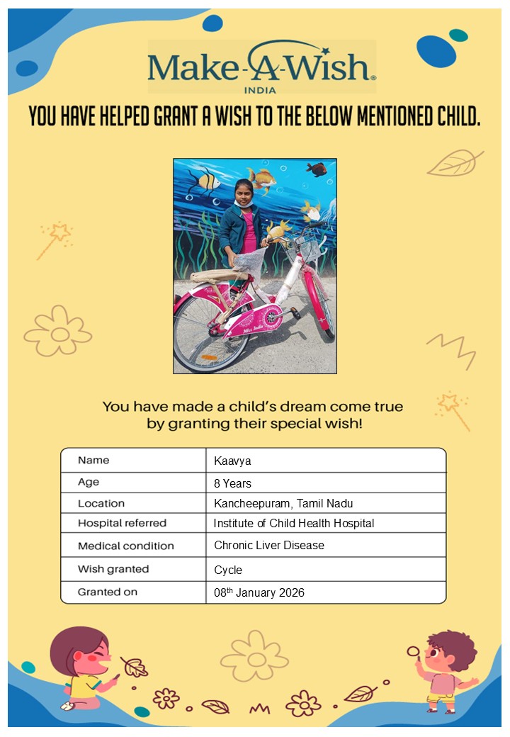 At an average cost of INR 10,000, every wish covers planning, logistics, and the magical experience itself, and by supporting this campaign, you are not just creating smiles but giving children hope, strength, and a better chance of recovery.