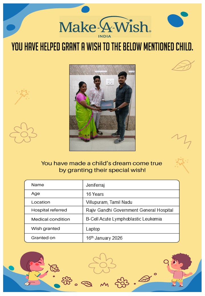 By supporting this campaign, you can help turn a child’s dream into reality, giving them strength, hope, and smiles for a brighter future. Your contribution spreads joy, courage, and inspiration to children in Chennai who need it most and helps them believe in the magic of dreams, even in the toughest times.