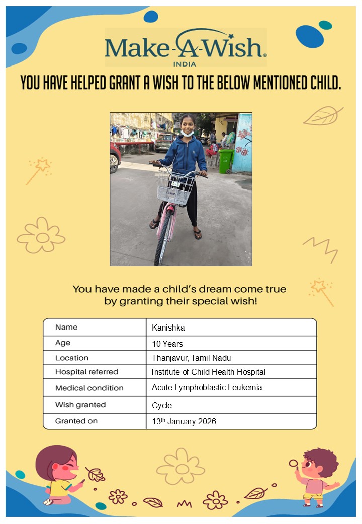 At an average cost of INR 10,000, every wish covers planning, logistics, and the magical experience itself, and by supporting this campaign, you are not just creating smiles but giving children hope, strength, and a better chance of recovery.