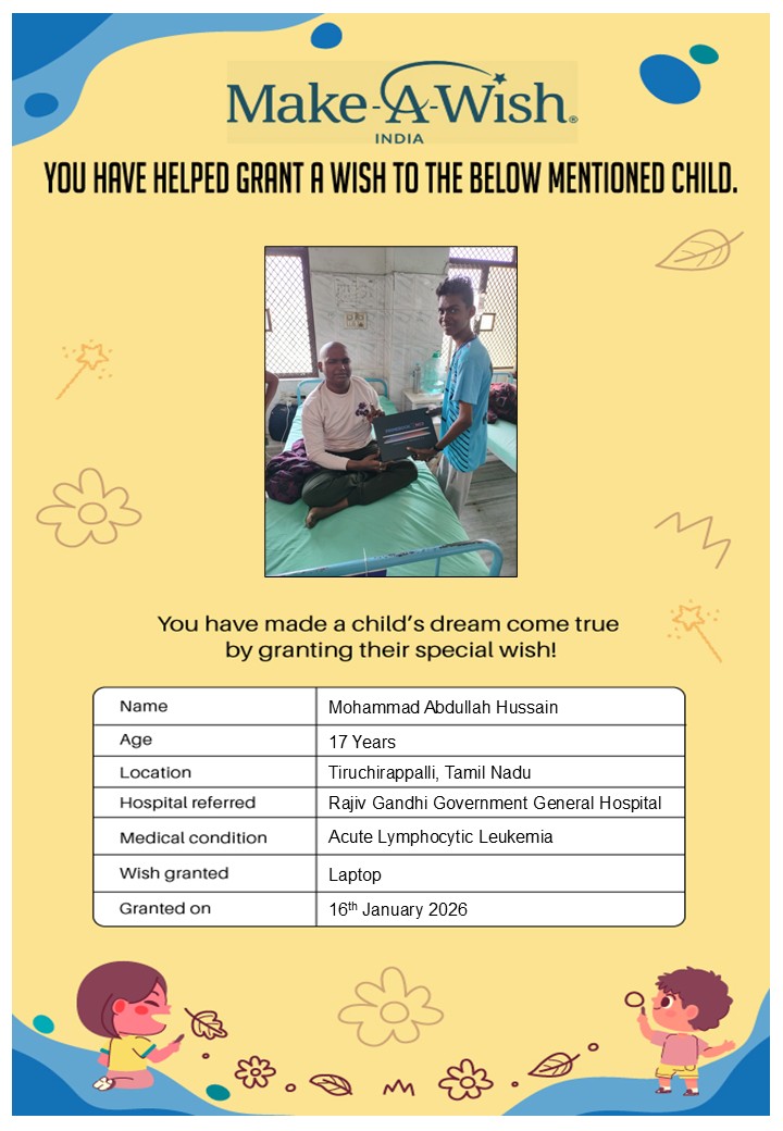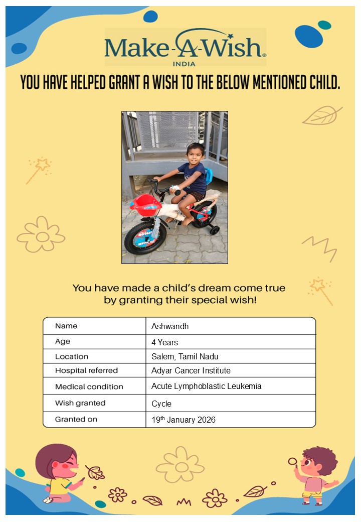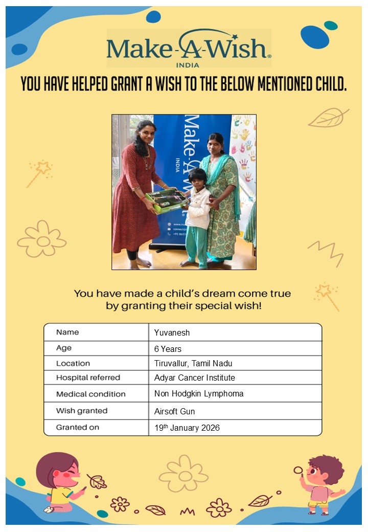 At an average cost of INR 10,000, every wish covers planning, logistics, and the magical experience itself, and by supporting this campaign, you are not just creating smiles but giving children hope, strength, and a better chance of recovery.