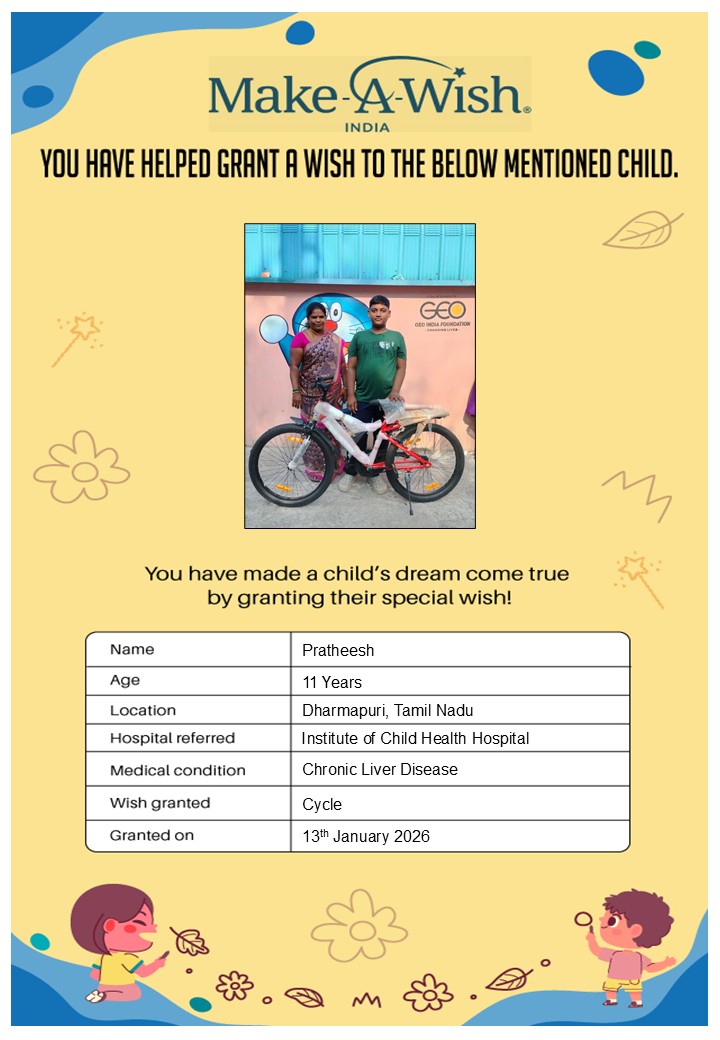At an average cost of INR 10,000, every wish covers planning, logistics, and the magical experience itself, and by supporting this campaign, you are not just creating smiles but giving children hope, strength, and a better chance of recovery.
