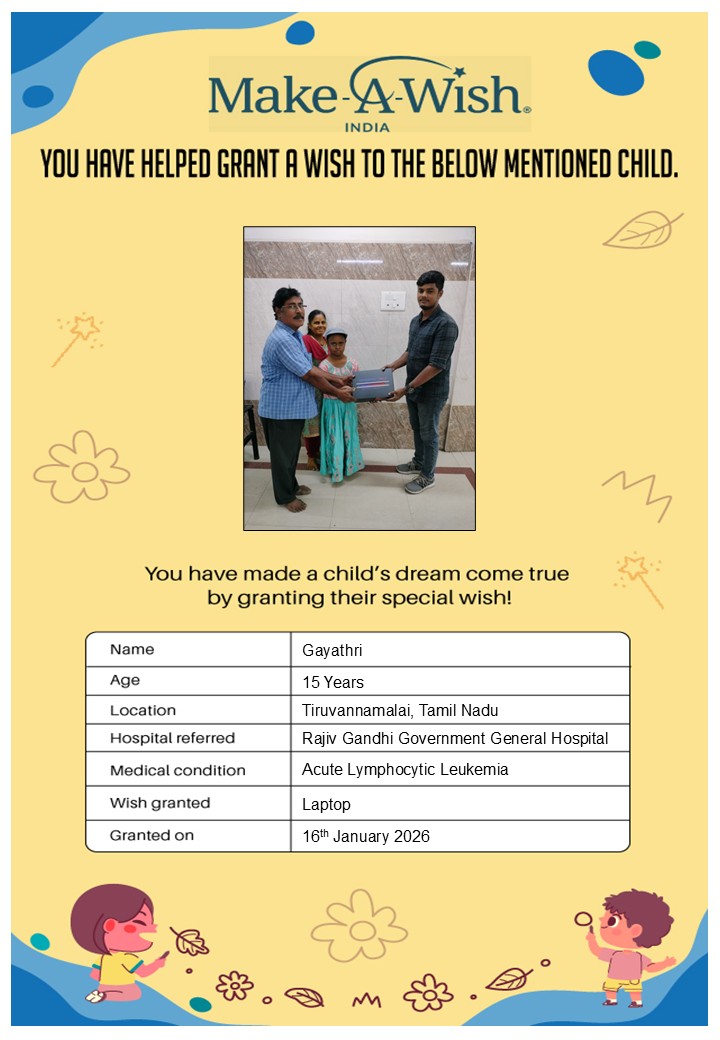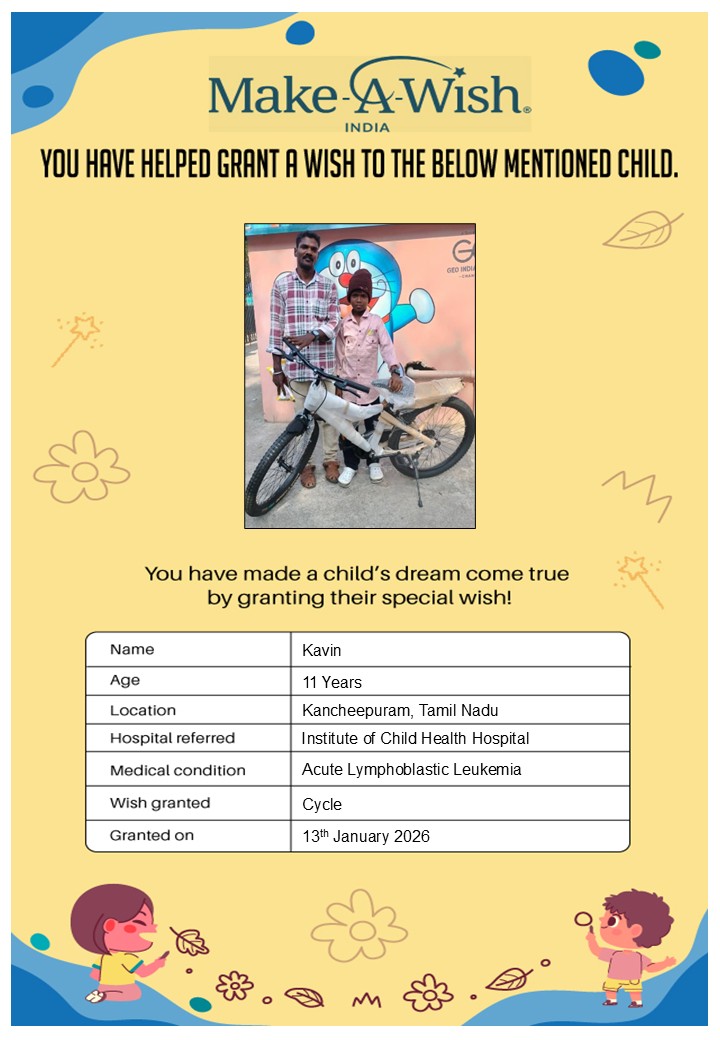 By supporting this campaign, you can help turn a child’s dream into reality, giving them strength, hope, and smiles for a brighter future. Your contribution spreads joy, courage, and inspiration to children in Chennai who need it most and helps them believe in the magic of dreams, even in the toughest times.