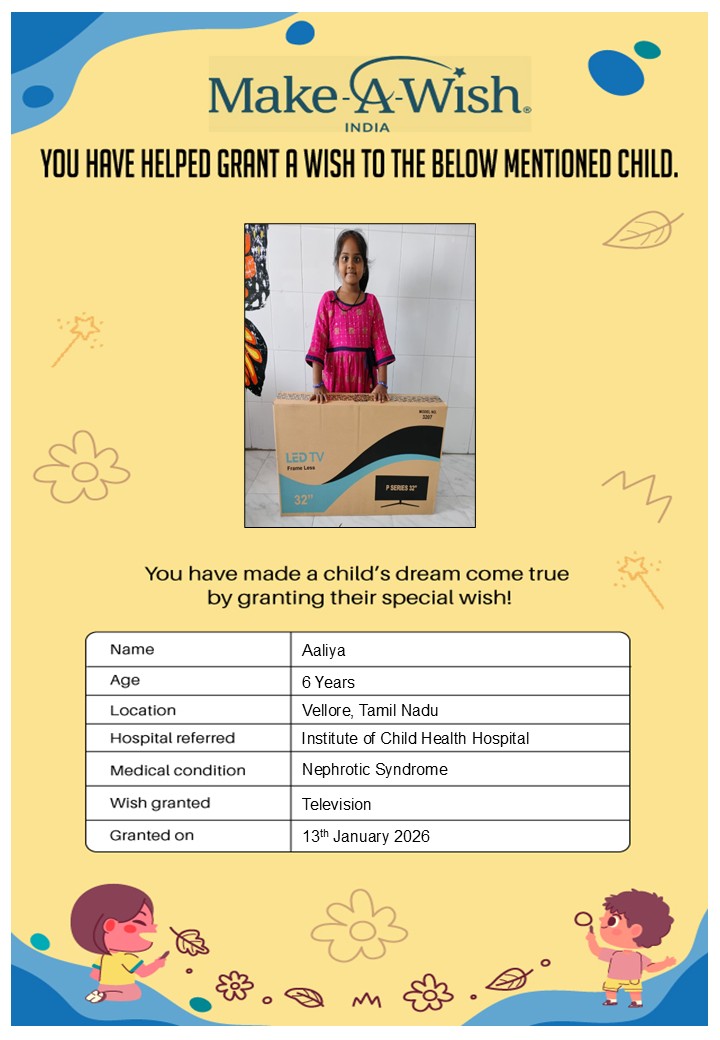 At an average cost of INR 10,000, every wish covers planning, logistics, and the magical experience itself, and by supporting this campaign, you are not just creating smiles but giving children hope, strength, and a better chance of recovery.