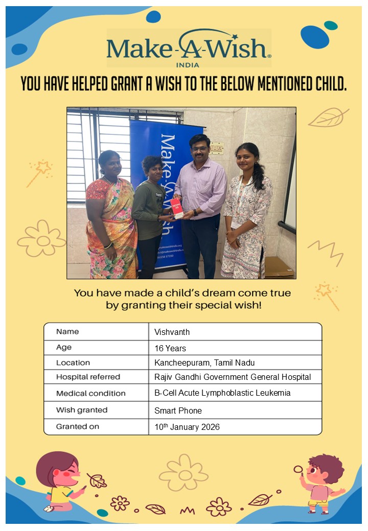 At an average cost of INR 10,000, every wish covers planning, logistics, and the magical experience itself, and by supporting this campaign, you are not just creating smiles but giving children hope, strength, and a better chance of recovery.