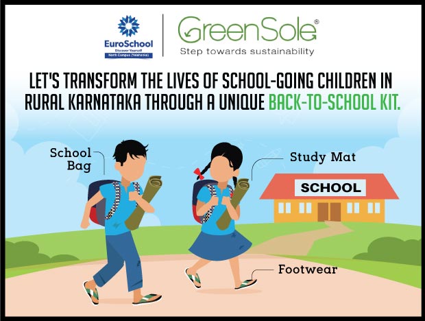 The back-to-school kit costs just INR 950 and gives students a pair of recycled footwear, a recycled study mat to sit comfortably at school or home, and a recycled school bag for books. This is a very small amount to impact a student. Fund INR 1900, for example, and transform the lives of 2 students.