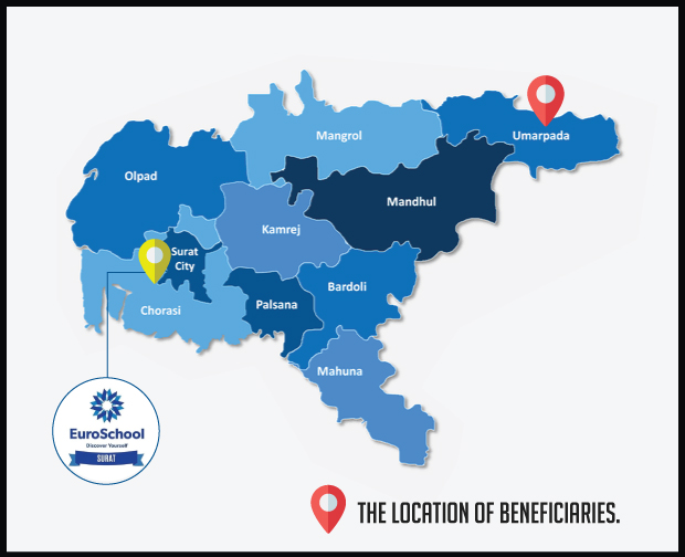 MAP SHOWING AREAS WHERE RURAL STUDENTS WILL BENEFIT IN SURAT, GUJARAT: